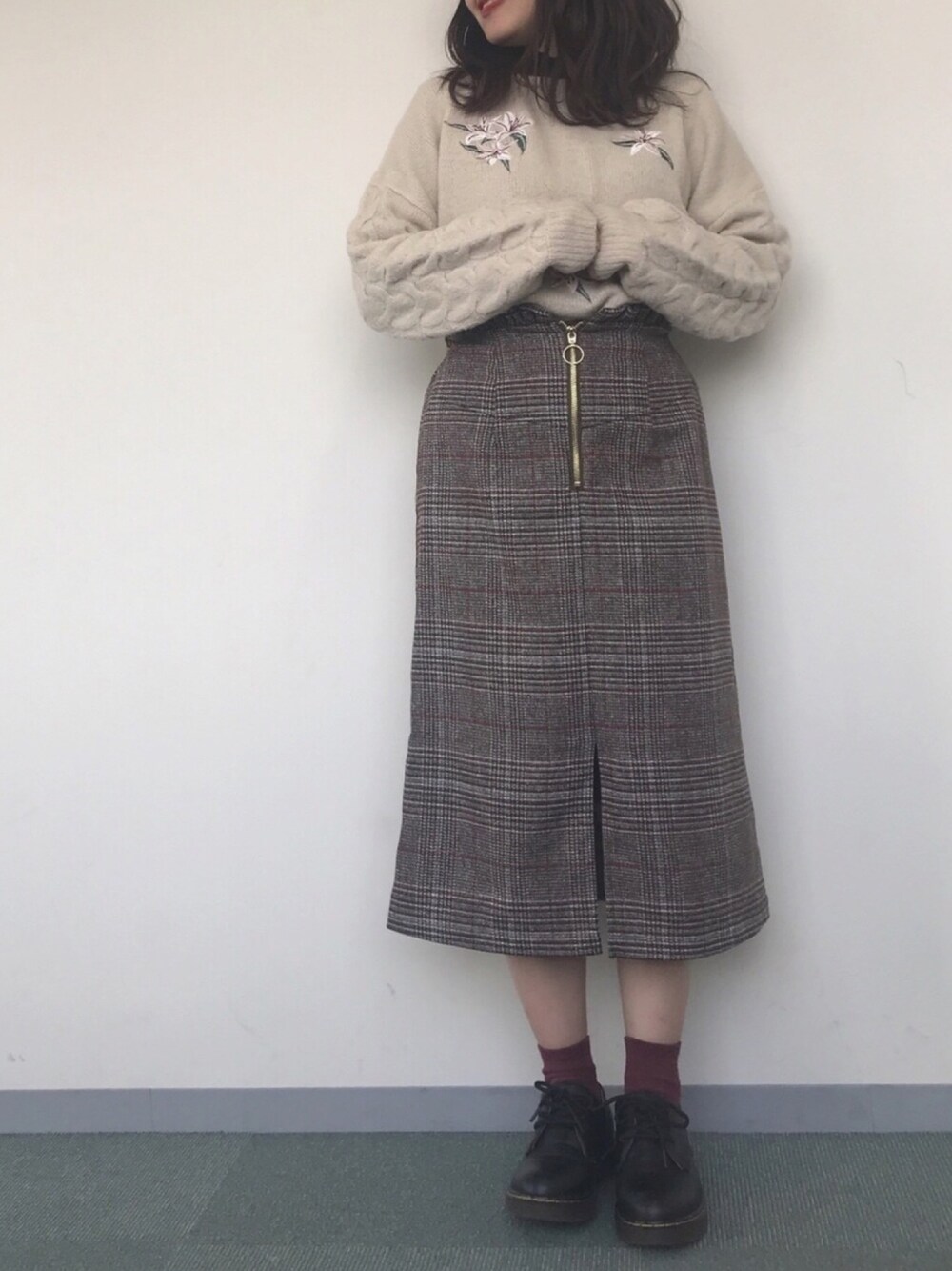 reinaのニット/セーター「袖ケーブル花刺繍PO」を使ったコーディネート