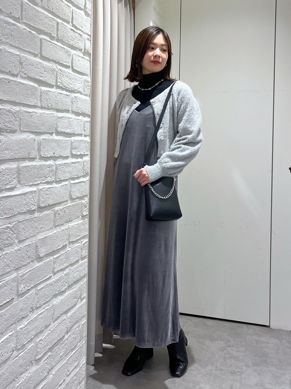 mizuki(FREE'S MART 天神地下街)のワンピース「ナローベロアVネックキャミワンピース」を使ったコーディネート