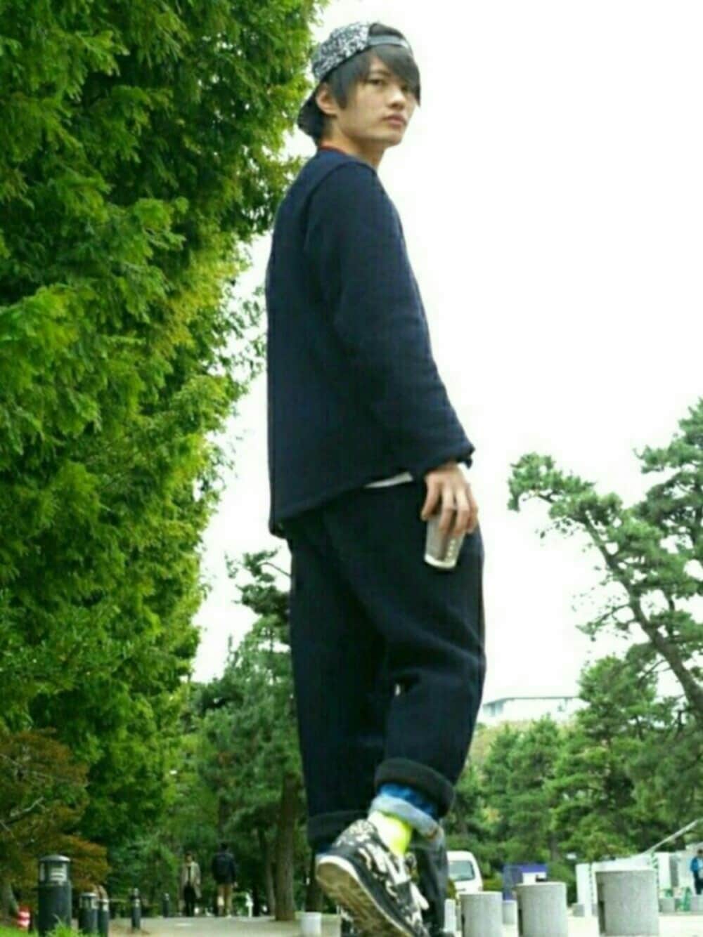 ブルー系のパンツを着用したメンズの冬コーディネートの1枚目の写真