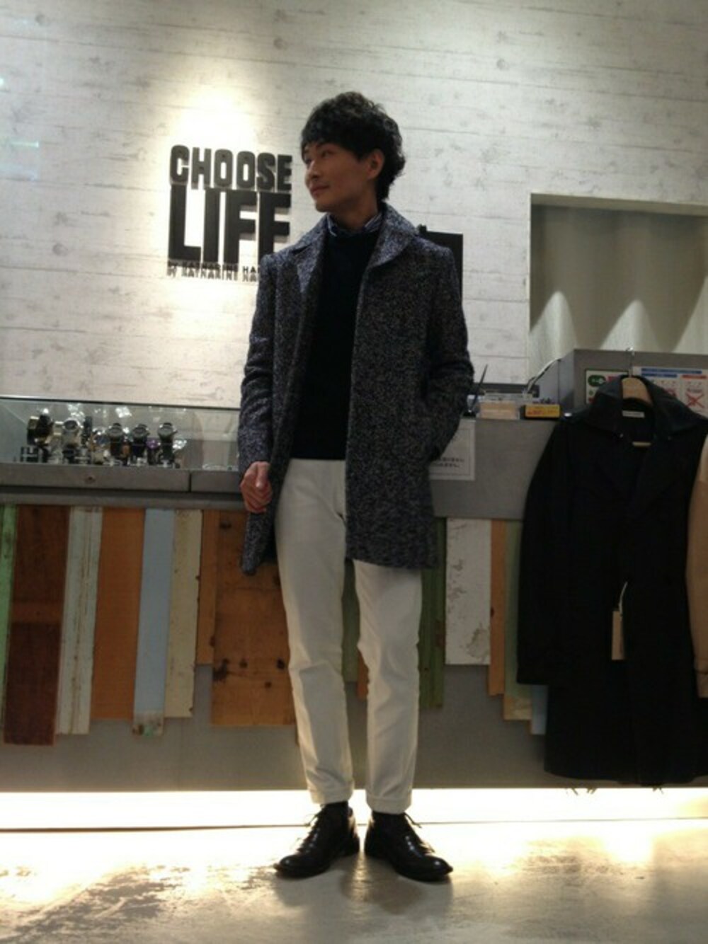 naoki kimuraのステンカラーコート「LOOP HERRINGBONE / ループ ヘリンボン コート」を使ったコーディネート