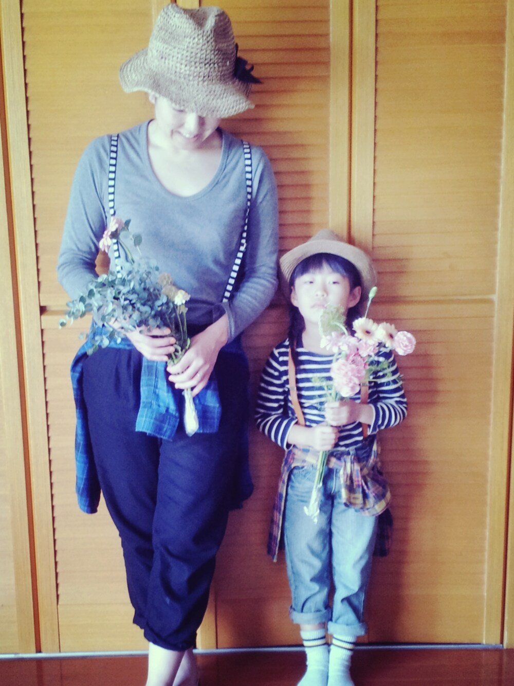 #キッズバイク のpicと同じ日に。 おそろい気分で。 おさんぽがてら近所のお花屋さんに 行った帰りです。