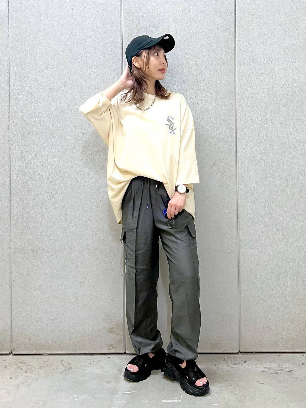 メンズアイテムを使ったセールコーデ⚾️🔥 Tシャツの刺繍ロゴはラメ感があり とってもおしゃれです✨️