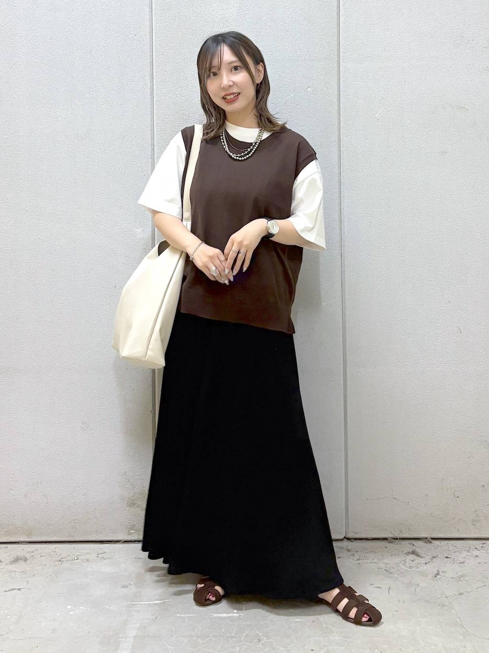 ノースリーブのトップスの下に Tシャツを重ねてベスト風に♡ 薄手で脇も広いので重ねやすかったです💓