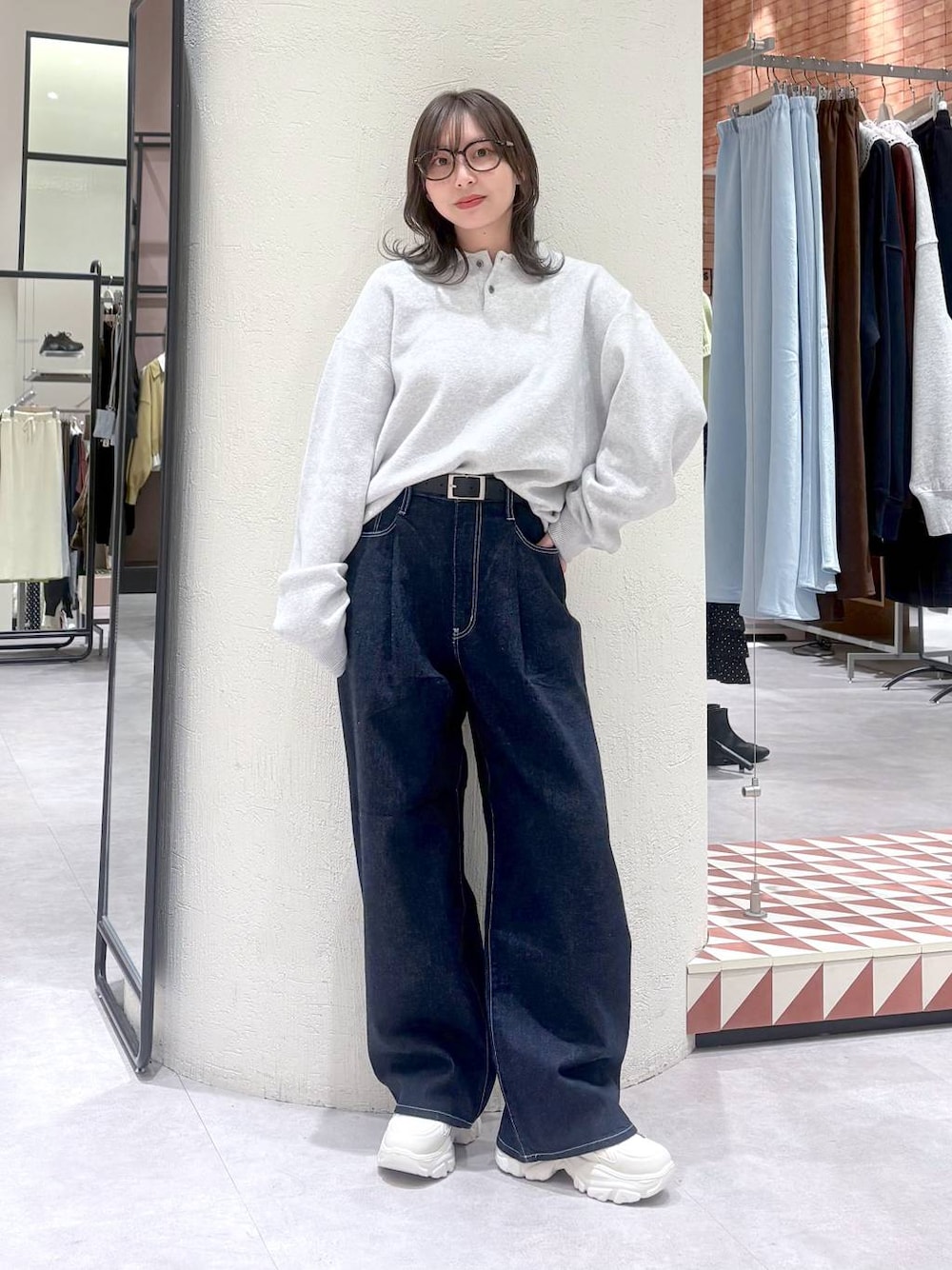 上下ユニセックスアイテムですദ്ദി ῀ᢦ῀ )💗 ズボンはMサイズの着用で ハイウエスト履き&厚底スニーカーでいい感じでした⭐️