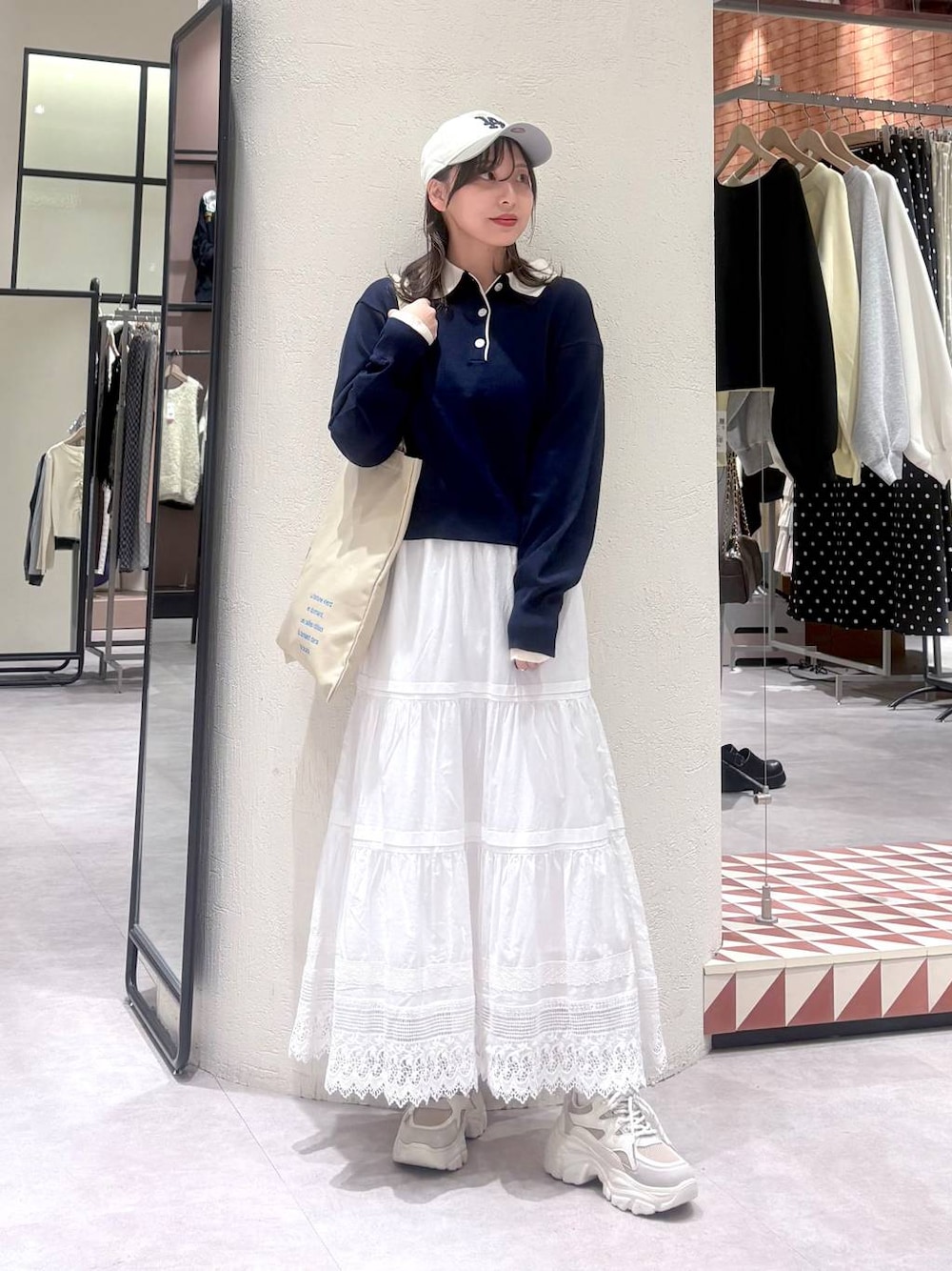 ポロニットで春の甘めカジュアルコーデ🌸