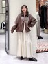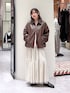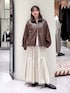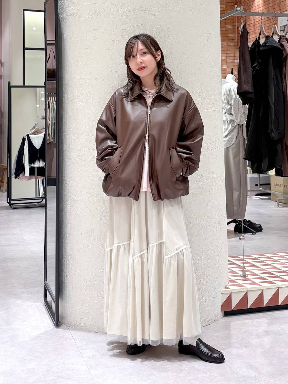 ブラウンとピンクの組み合わせなら レザーブルゾンも可愛く着れちゃう💗🧸