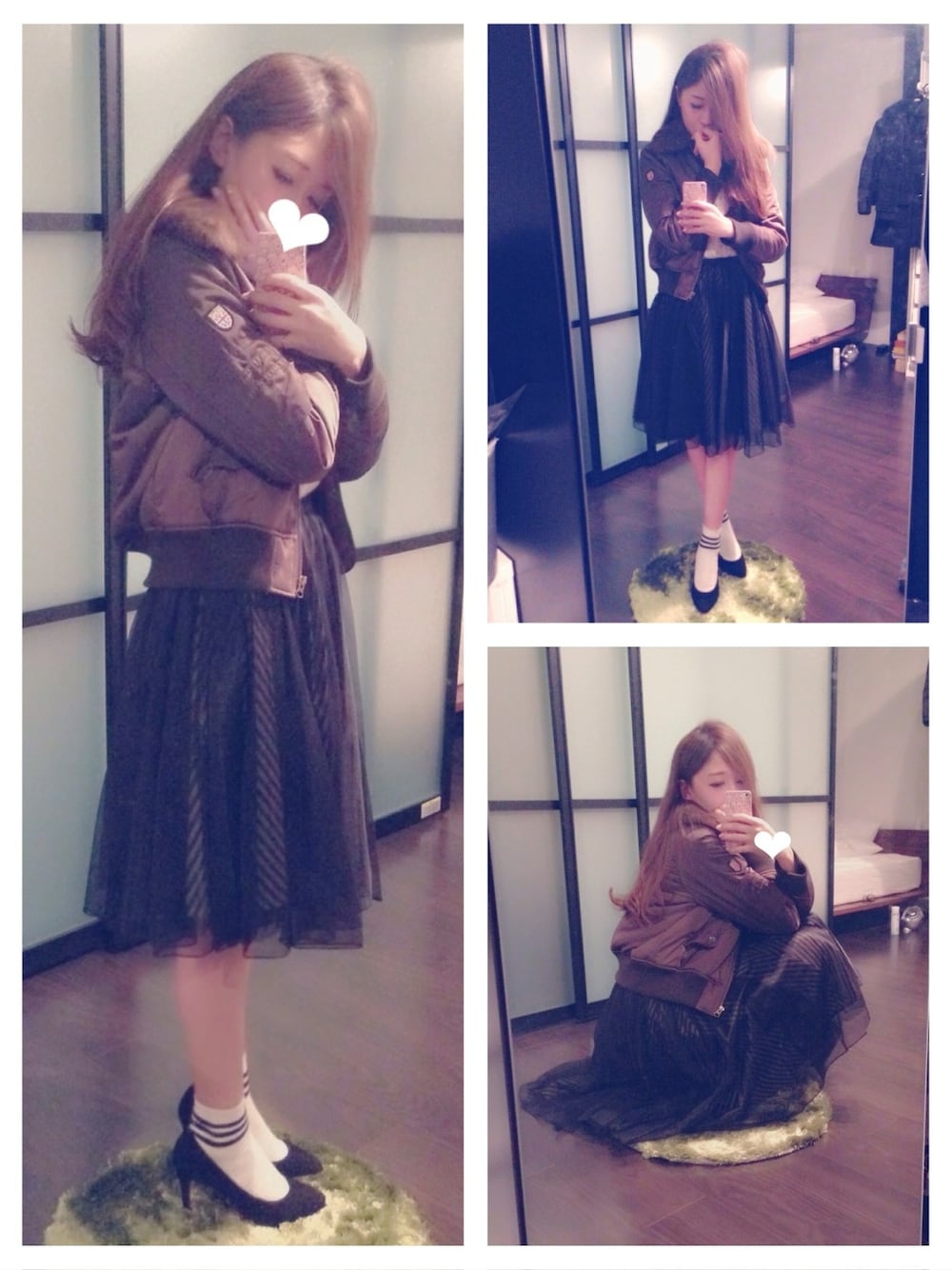 outer,tops//khaju skirt //COCO DEAL shoes //DIANA MA-1には黒チュールスカート! わたしの中で定番☻ 靴下×ヒールを合わせて、レディな感じに〜 MA-1は画像で色がわかりにくいけど、カーキです。 珍しくストレートヘア。髪伸びたな*\(^o^)/*