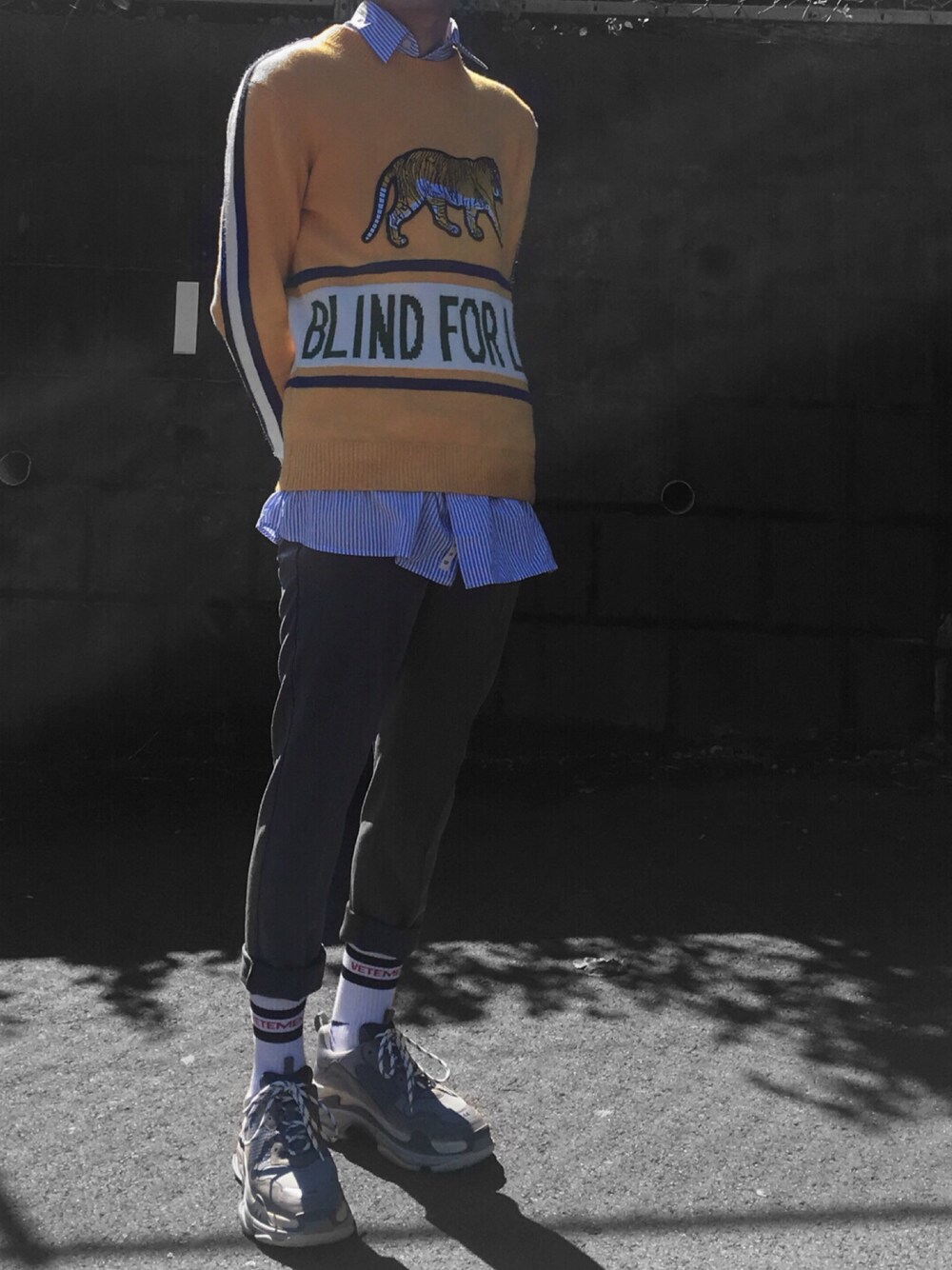N7のニット/セーター「Gucci - Blind For Love jumper - men - ポリアミド/ウール - S」を使ったコーディネート