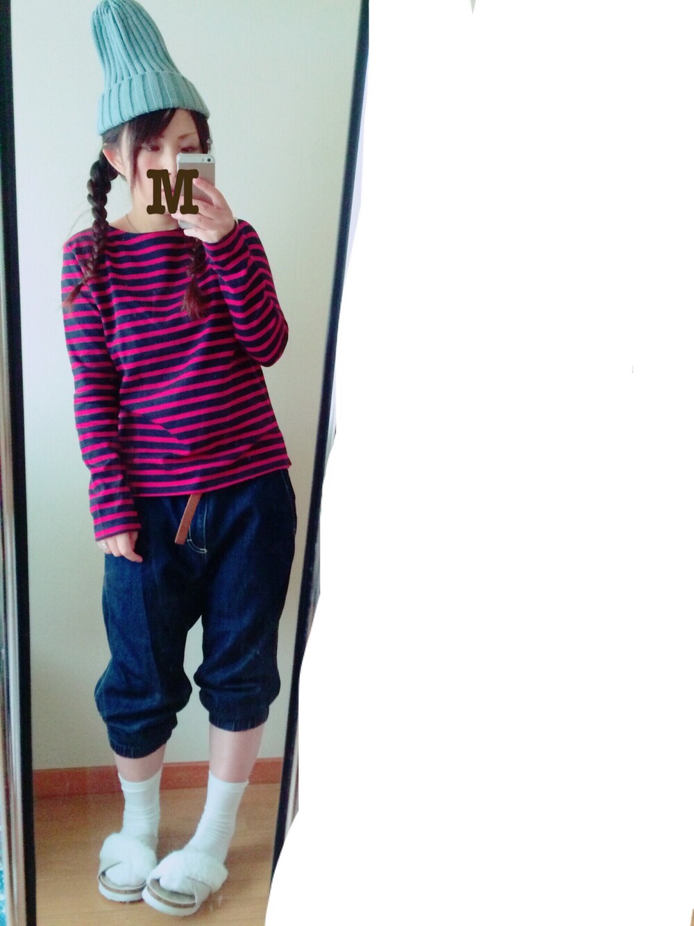 いつもいーねー!とかセーブー!とかチラ見とかありがとうございます((y)ˆ³ˆ)(y) んふふ。 今日は稲刈り体験に行って帰りにカラオケ見つけてまたもやカラオケに行ってきたぜ!コーデ。 このボーダーの色は普通やったら絶対買わないやつ。でも買ってみたら意外とかわいいやつ。