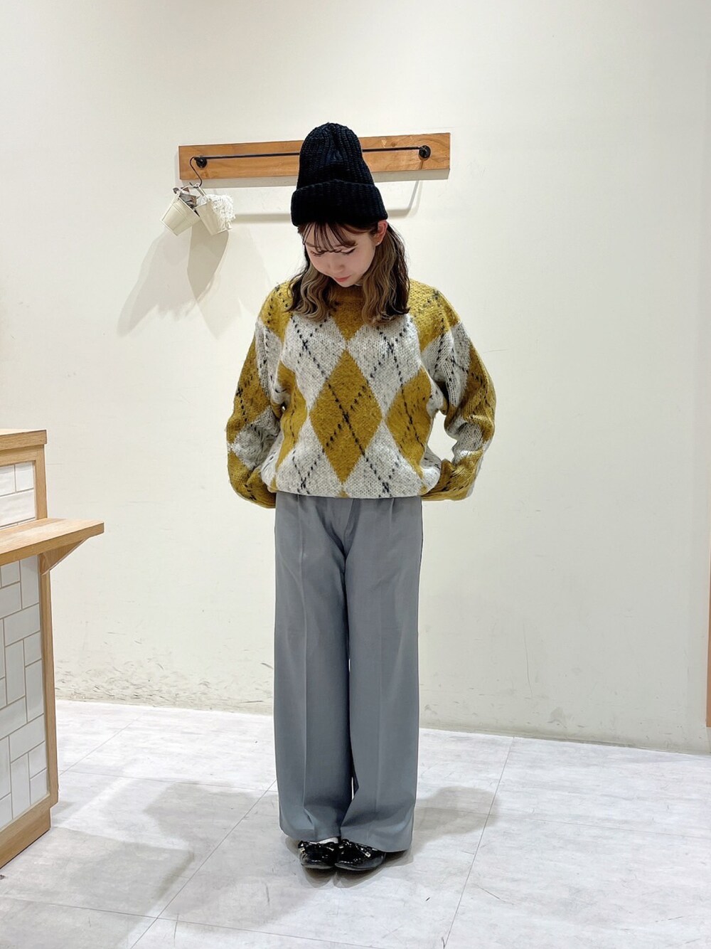 namiのハット「ブローチ付ニットキャップ」を使ったコーディネート