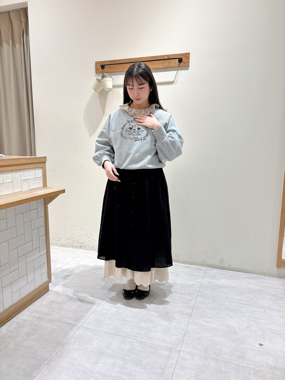 ペチワンピースを使ったコーディネート🤍 上に着ているワンピースをSサイズにすることにより、ペチワンピの大きなレースが存在感⤴️