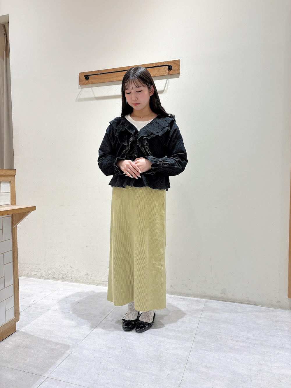 namiのシャツ/ブラウス「デニムスカラップ刺繍フリル2WAYブラウス」を使ったコーディネート