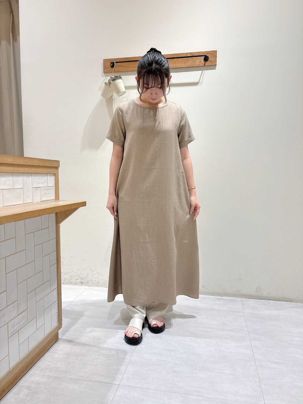 namiのワンピース「リネンタッチマキシワンピース」を使ったコーディネート