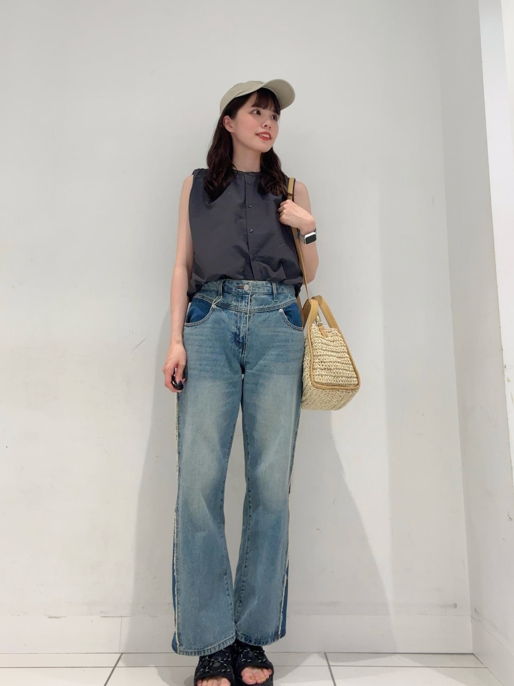 ななみ(SENSE OF PLACE 天神地下街)のシャツ/ブラウス「バルーンノースリーブシャツ」を使ったコーディネート