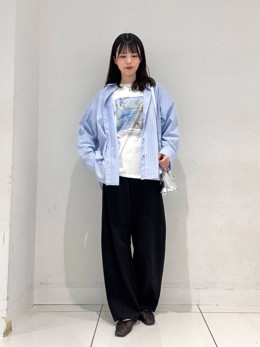 ご覧いただきありがとうございます!✨ 店頭で人気なシャツを使用したコーデです! シャツ1枚で着るのはもちろん、羽織としてもお使いいただけます◎ ボトムのカーブパンツは程よいルーズ感で、ゆったりしながらも足を綺麗に見せてくれます👀 169cmMサイズを着用しております! シューズもハートのデザインが可愛くて、シンプルなコーデのワンポイントにピッタリです✨ Lサイズを着用しております!