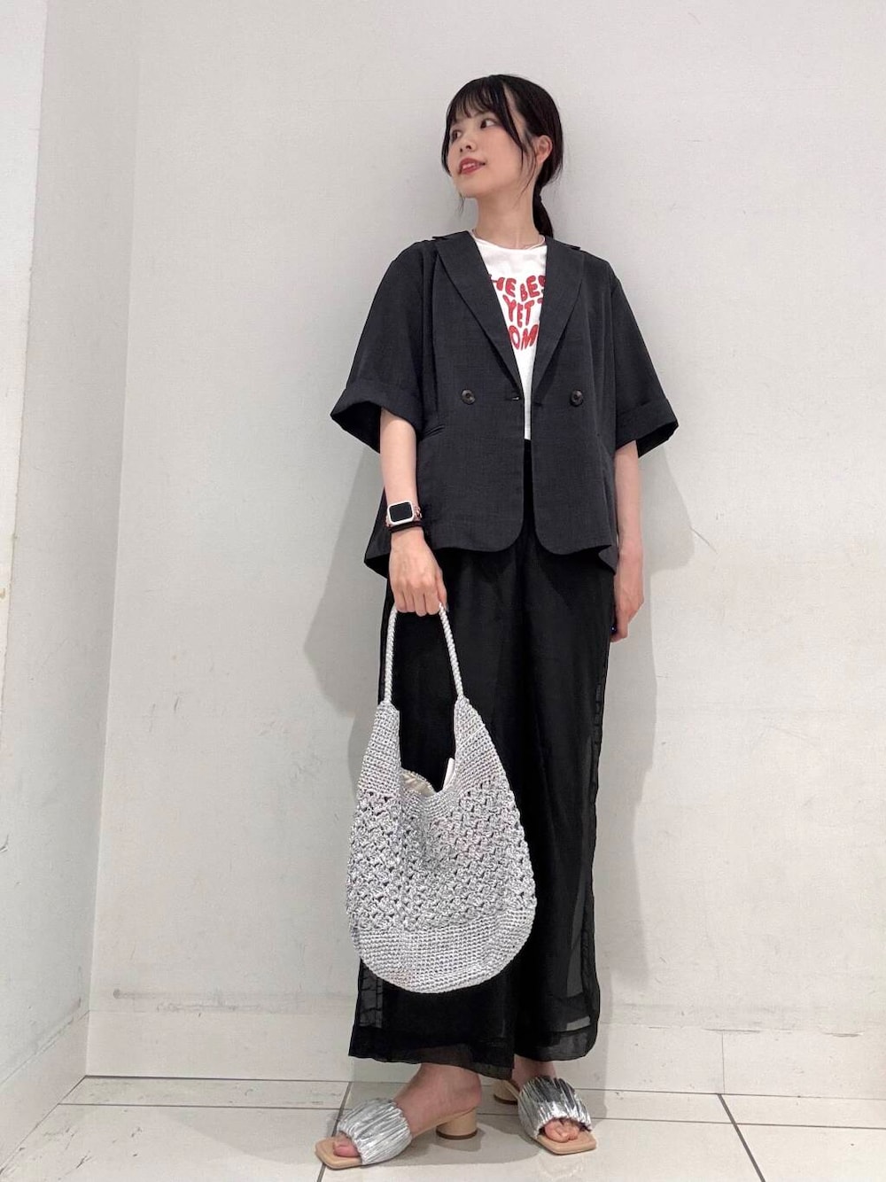 ななみ(SENSE OF PLACE 天神地下街)のハンドバッグ「メタリックヤーンバッグ」を使ったコーディネート