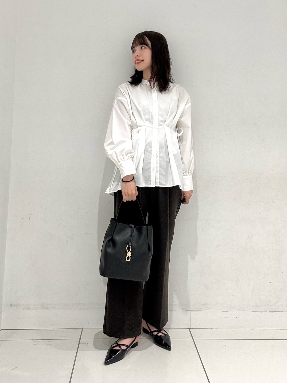 着用コーデ:66件ななみ(SENSE OF PLACE 天神地下街)のシャツ/ブラウス「ウエストタックボリュームスリーブブラウス」を使ったコーディネート