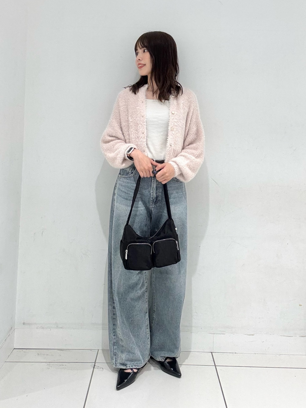ななみ(SENSE OF PLACE 天神地下街)のカーディガン/ボレロ「『一部WEB限定カラー』ラメシャギークロップドカーディガン」を使ったコーディネート