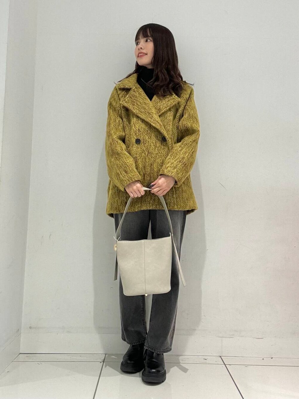 ご覧いただきありがとうございます!✨ シャギーコートを使用したコーデです💛 このコートを羽織るだけで一気に華やかに見せてくれるので、普段暗めのコーデになりがちな方にピッタリなアウターとなっております◉ デニムでカジュアルに合わせておりますが、タイトスカートなどと合わせてもすごく可愛いのでオススメです🙌🏻