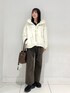 着用コーデ:166件ご覧いただきありがとうございます!✨ 着用しているアウターは、昨年も大好きだったモンスターコートのショートバージョンになっております🙌🏻 よりスッキリ見せてくれるのに温かさ&軽さは変わらないのですごくオススメです◎ トップスのヘンリーネックセーターは程よく体にフィットしてくれ様々なボトムに合わせやすいです✨ わたしも2色購入しました〜✌🏻