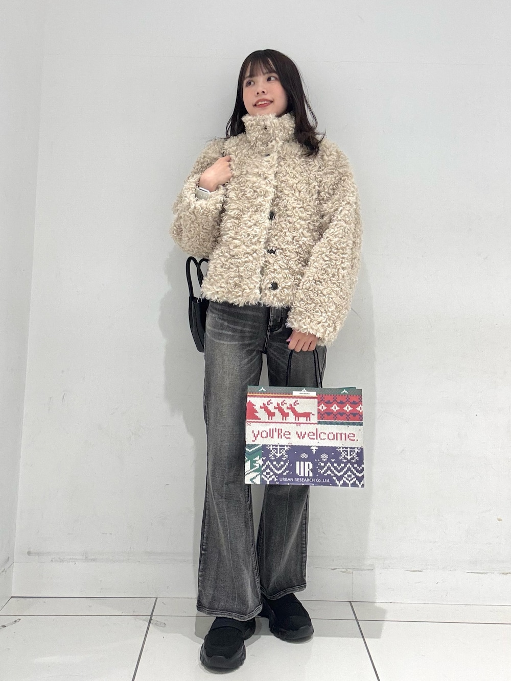 ご覧いただきありがとうございます!✨ 店頭で大人気なプードルジャケットを使用したコーデです!! 見た目の可愛らしさはもちろん、暖かく触り心地も抜群です◎ イルミネーションや旅行などでもすごく映えるアウターなのでオススメです🙌🏻