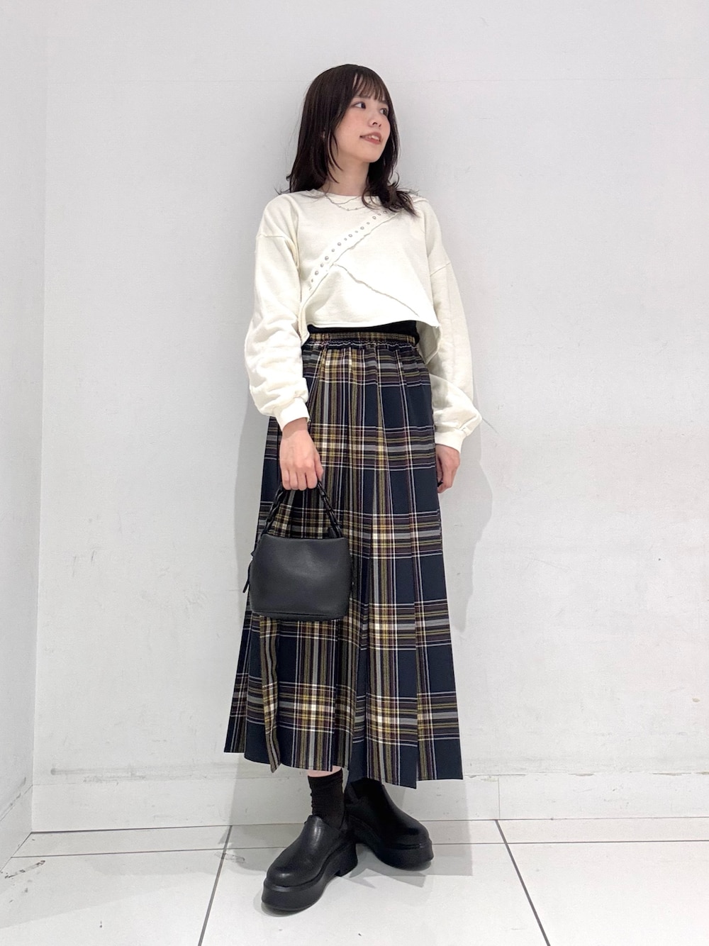 着用コーデ:57件ご覧いただきありがとうございます!✨ シンプルデザインのトップスとチェックスカートは、スカートのデザインがすごく映えるのでオススメです◎ インナーにタートルネックや、シャツをレイヤードするのもかわいいです!