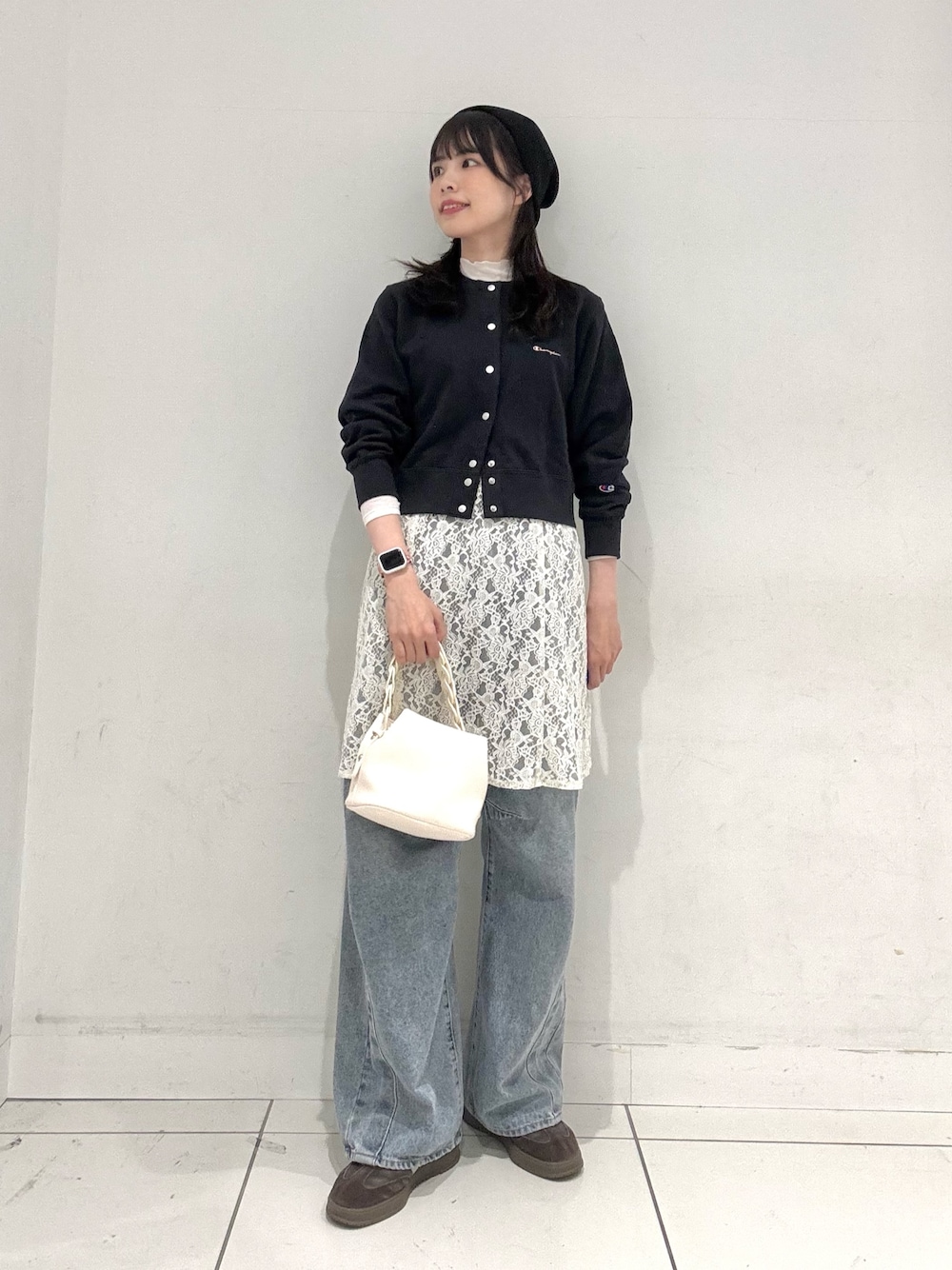 ななみ(SENSE OF PLACE 天神地下街)のカーディガン/ボレロ「『別注』CHAMPION×SENSE OF PLACE スウェットカーディガン」を使ったコーディネート