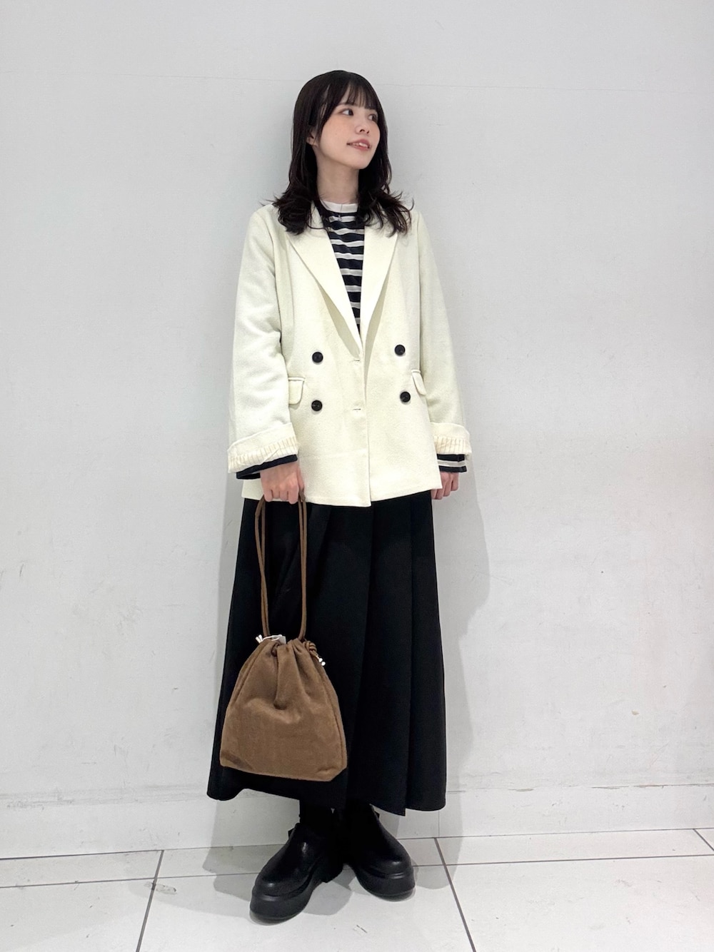 ななみ(SENSE OF PLACE 天神地下街)のTシャツ/カットソー「ベロアボーダーTシャツ」を使ったコーディネート