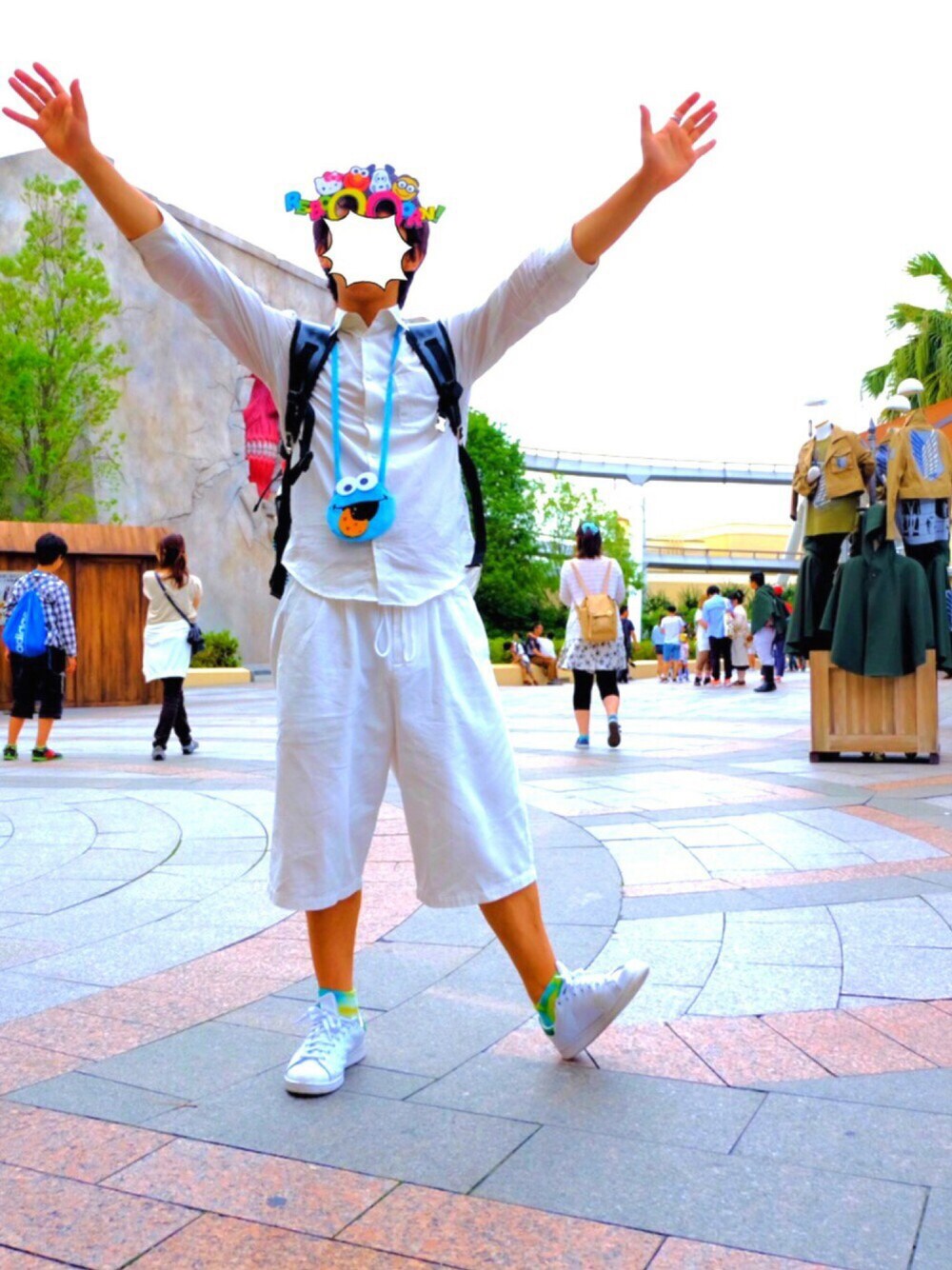 USJに来てます! 買ったメガネ🕶や、 パスケースが目立つように、 オールホワイトで 揃えて来ました REBOOOOOORN!!!!!!
