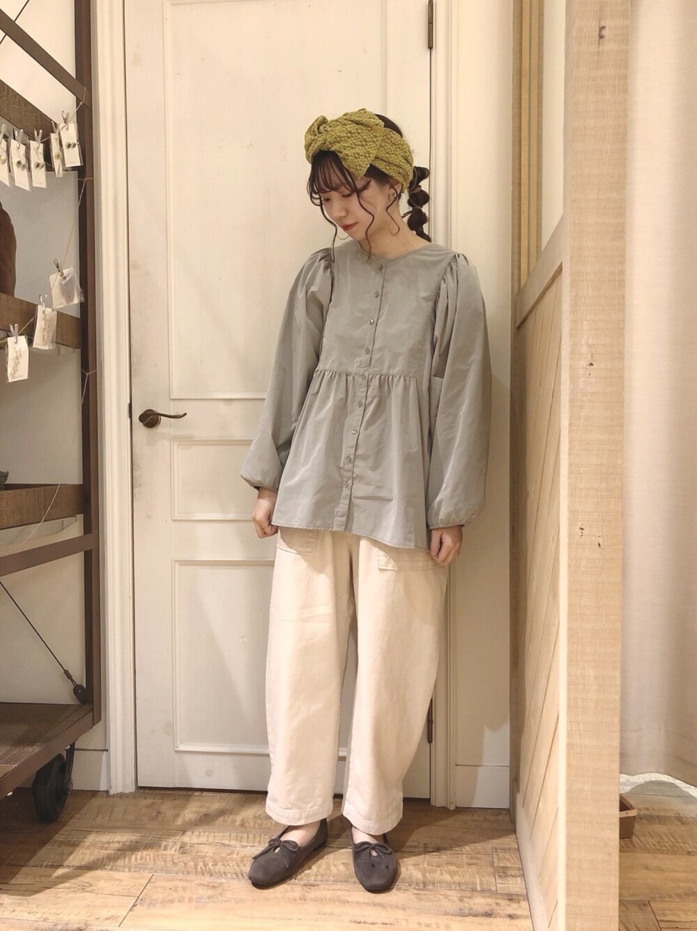 ご覧いただきありがとうございます 🌿 トレンドのボリュームスリーブのブラウス を着用しました ☺︎ ガーリーがお好きな方は下にレースインナー など合わせても可愛いですよ 🌷 パンツは裾に釦がついていて2段階調節ができ、少しシルエットを変えられます ^^ 春らしく淡いトーンで合わせました👗 春物一部50〜60%offとお買い得です✨ お近くにお越しの際はお立ち寄り下さい^^