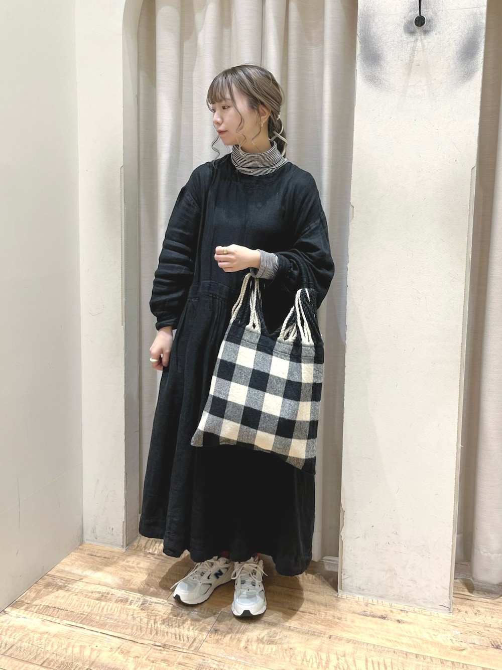 naのハンドバッグ「ギンガムチェックハンモックバッグ」を使ったコーディネート
