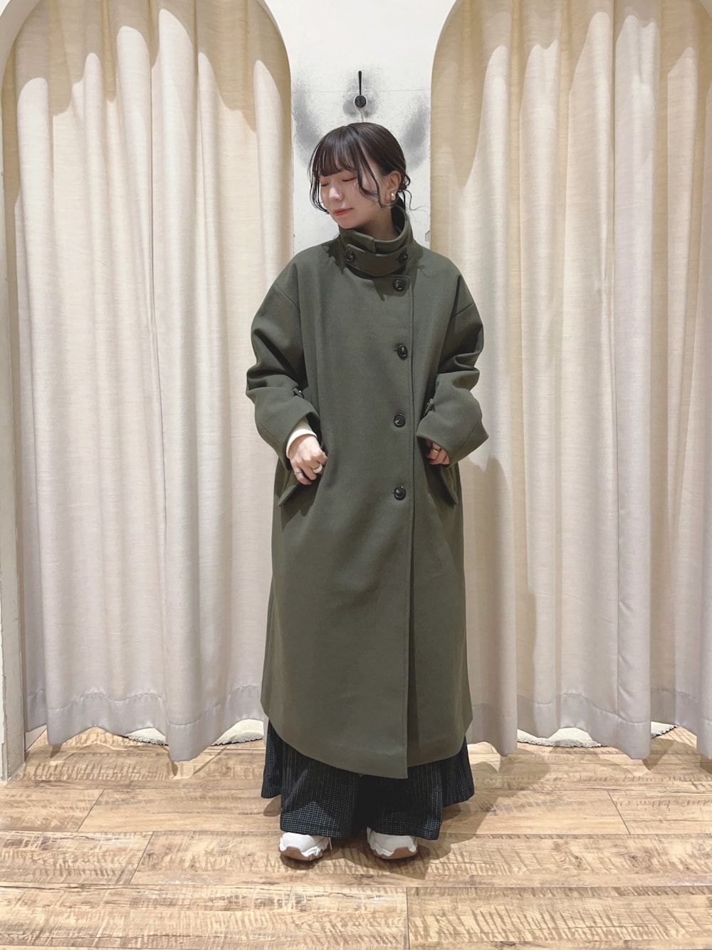 ご覧いただきありがとうございます🎅 ⟡.꙳ 前回のコートのスタンドカラーを閉じて 着用しました^^ ベルトデザインも可愛いですよね☺︎ 裏地付きでゆったりしているので、 ニットも着込めるのが嬉しいポイント🧶 ボタンを上まで閉じればマフラーなしでも 暖かいです🔥 店頭やオンラインショップでご覧ください🛍 ˎˊ˗