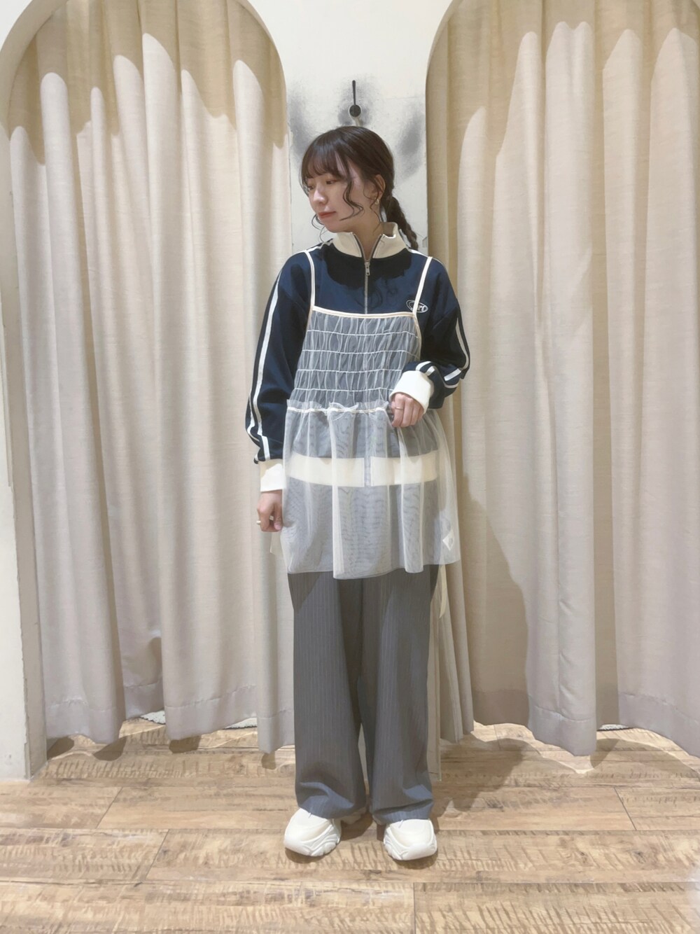 ご覧いただきありがとうございます🍦 ˎˊ˗ ehka sopoのトレンドコーデです☺︎ トラックジャケットにチュールキャミを 重ねました^^ 異素材の組み合わせが今年らしくて可愛いですよね👕 ୨୧ チュールキャミはスウェットなど手持ちの アイテムに重ねるだけで新鮮な印象に🫧 インナーを変えれば春夏と通して着回し できるアイテムです👩🏻🍳 ダッドスニーカーは履いてみるととっても軽いです! 高さもあるので丈の長いお洋服の時にも 身長がプラスできて便利ですね✨ 店頭やオンラインショップでご覧ください👀🛍