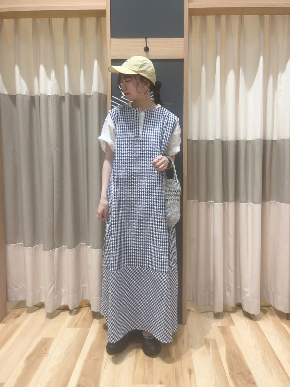 ご覧いただきありがとうございます🌻 夏にぴったりなノースリワンピ^^ ブルーのギンガムチェックは爽やかなカラーです🦈ˎˊ˗ 綿素材なのでさらっとしていて着心地も◎ 涼しく過ごせそうなワンピースです🎐 前後2wayでボタンを開けるとジレとしても着れるので、 着回しの幅が広がるアイテム🌼🐨 全色可愛いですが私はブルー狙いです^^ 店頭やオンラインショップでご覧ください🛍