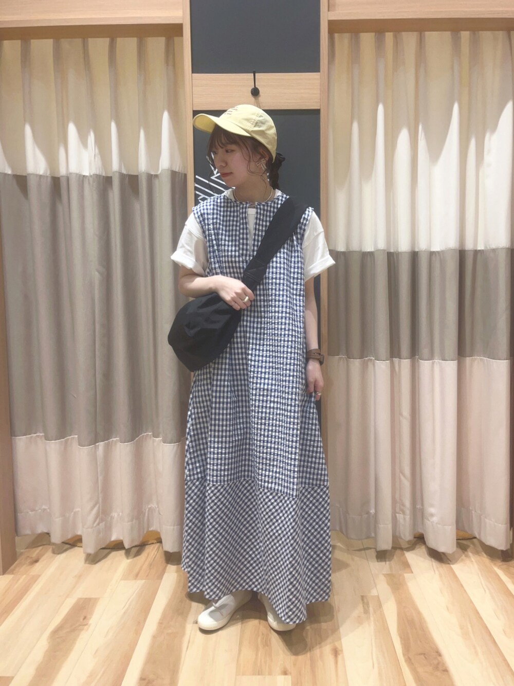 ご覧いただきありがとうございます🌻 ˎˊ˗ ワンピースも小物をカジュアルに合わせると 普段使いしやすいですね^^ ポコポコとした綿100%の素材が涼しくて 着心地も良いです! 店頭やオンラインショップでご覧ください🌼