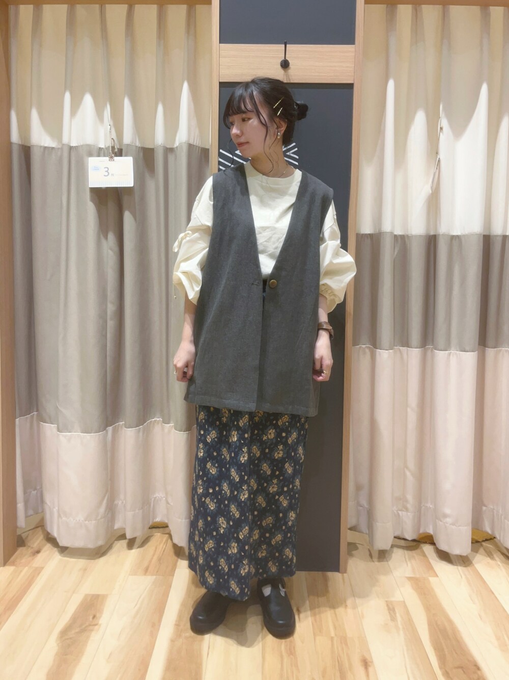 ご覧いただきありがとうございますˎˊ˗ 今すぐ着られる秋コーデです^^ 大人気の袖リボンプルオーバーにベストを 合わせました🍇 綿麻素材のベストは腰回りが隠れる丈なので 体型カバーにも嬉しいアイテムです◎ 店頭やオンラインショップでご覧ください⌒୨ৎ ࣪ ׅ