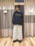 ご覧いただきありがとうございます🎃 フリルナロースカートを着用しました^^ 可愛らしい印象ですが、ロゴスウェットと合わせて カジュアルなコーデにしました🍦 柔らかい素材なので動きやすいです◎ これからの時期はニットに合わせても可愛いですね୨ৎ ࣪ ׅ 店頭やオンラインショップでご覧ください👀