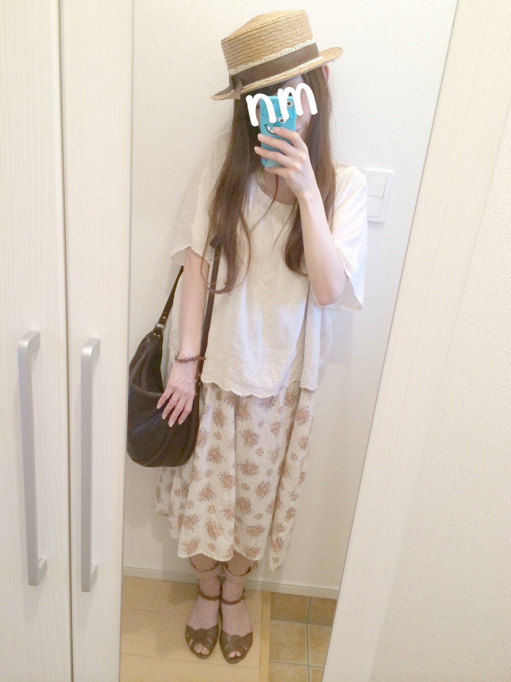 nmᵕ̈のハット「カンカン帽」を使ったコーディネート
