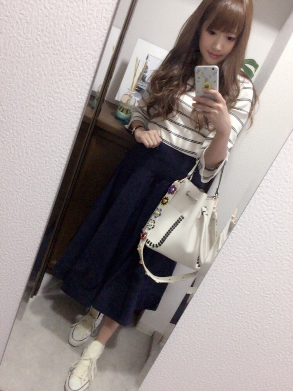 数億年ぶりのスカート😍 こちら、UNIQLOの奇跡起きました。 UNIQLOの奇跡とは、値下げシールで安っ!とレジまで持って言ったら、ほんまはそのシールよりさらに安い値段やったって奇跡。