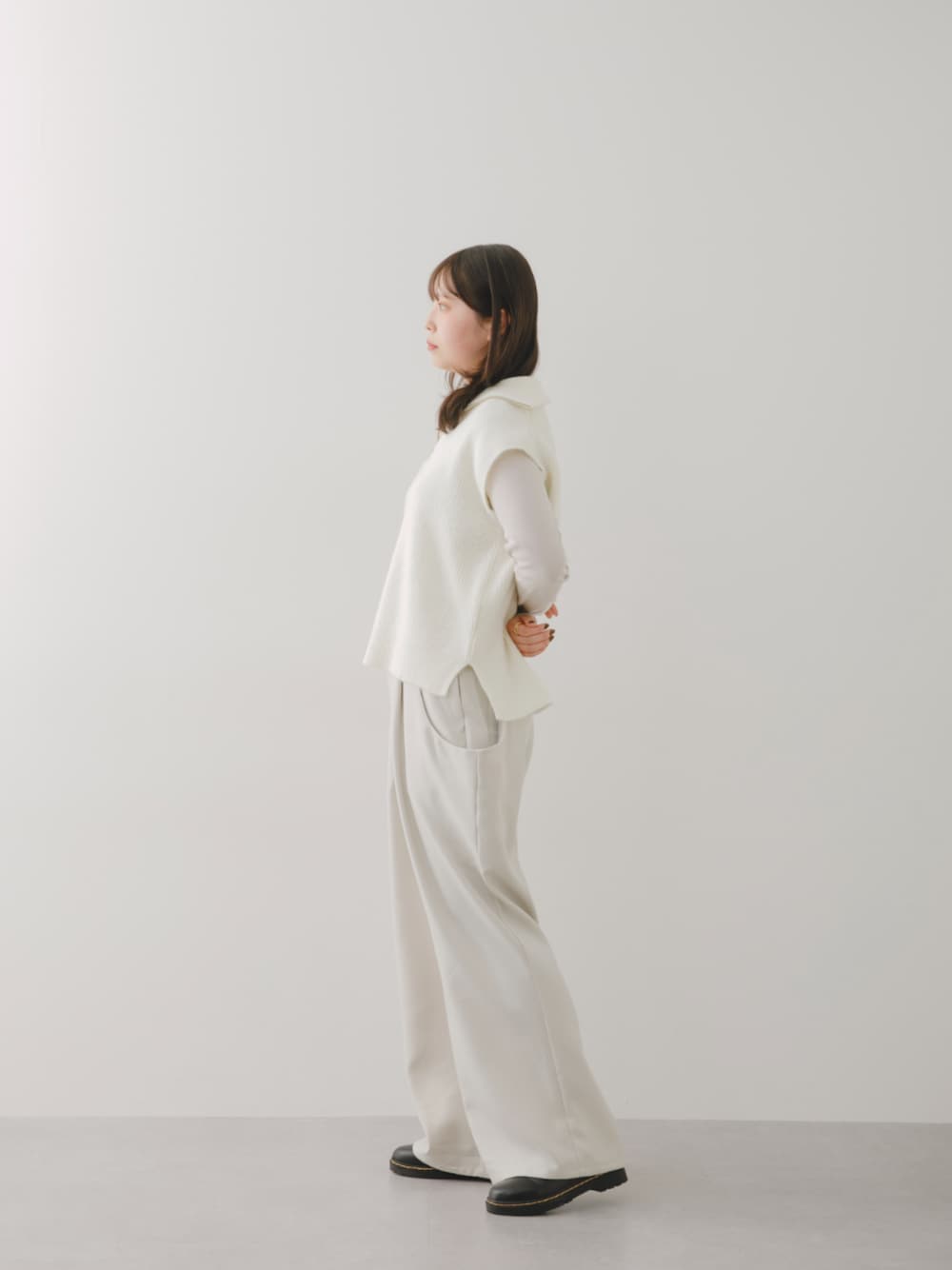 -N-(nissen本店models)のベスト「【Soiunique】ハーフZIPニットベスト」を使ったコーディネート