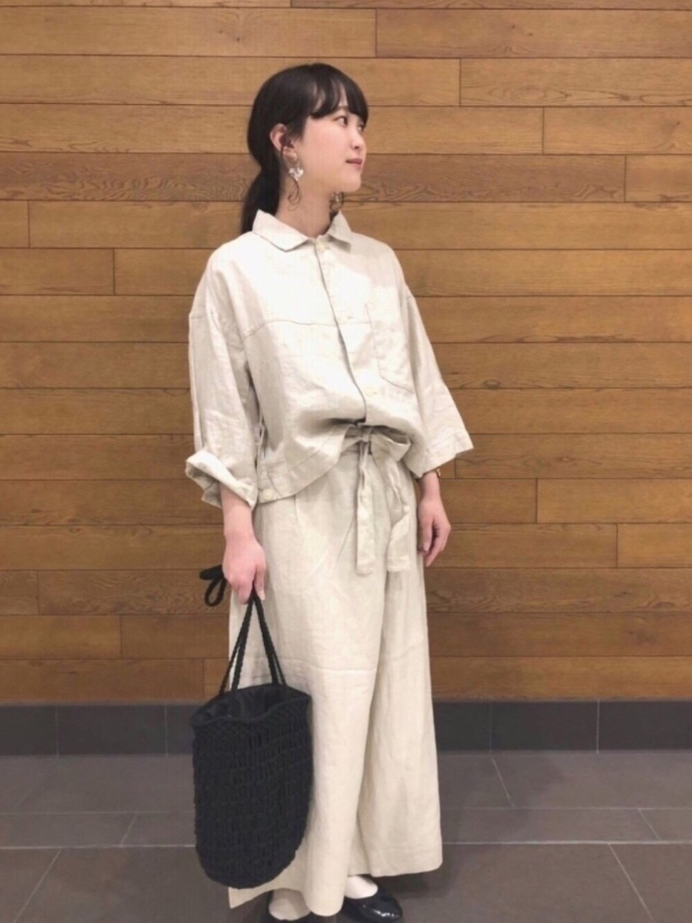 なかのハンドバッグ「マクラメバッグ」を使ったコーディネート