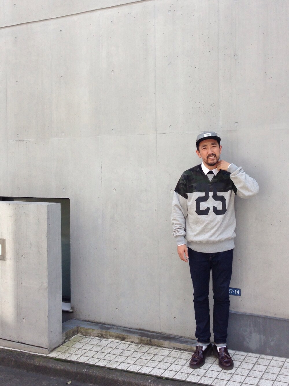 秋ですね 最近はスポーティーな感じのコーディネートが楽しいです。 スウェットの切り返しは、 深い色目の迷彩柄生地。 落ち着いたトーンが良いです。 ジェットキャップ:MACKDADDY スウェット:MACKDADDY スキニーデニム:MACKDADDY 革靴:Loake ここはあえて革靴で。