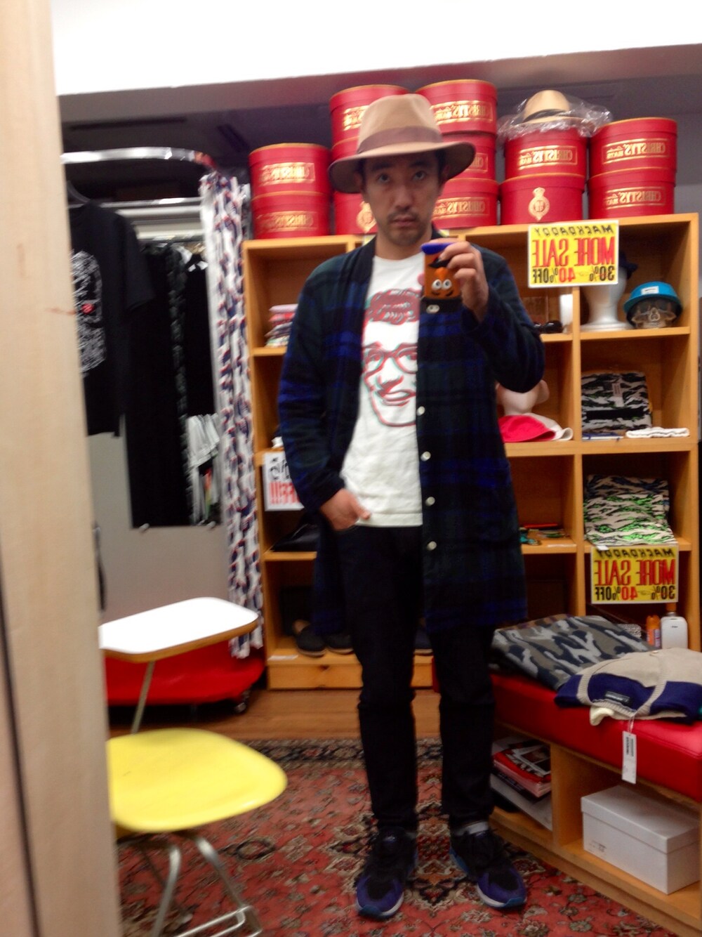 絶好の天気ですね 皆さんは何日和ですか? 僕は展示会前の休日出勤日和です… ケガしない様に楽しみましょ(^^) チェックシャツガウン:MACKDADDY Tシャツ:MACKDADDY スキニーデニムパンツ:MACKDADDY フェルトハット:MACKDADDY スニーカー:asics