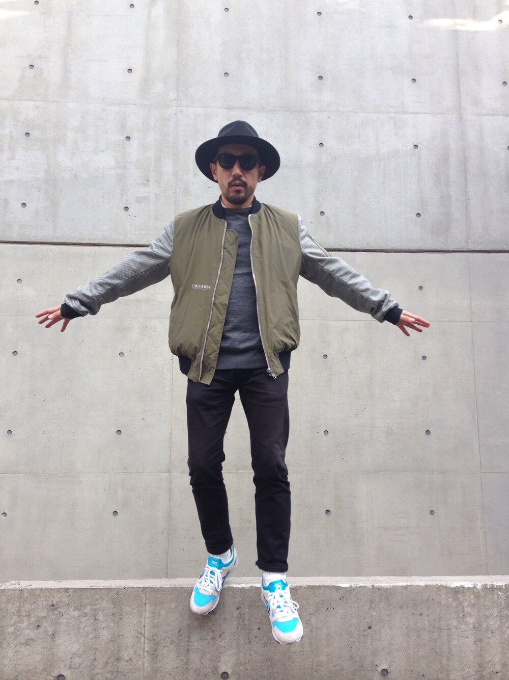 待ってましたMA-1! MサイズかLサイズで悩みましたが、Lサイズで行きます(^^) MA-1大好きだなぁ MA-1:MACKDADDY ニット:MARTIN MARGIELA スキニーパンツ:MACKDADDY ハット:MACKDADDY スニーカー:asics