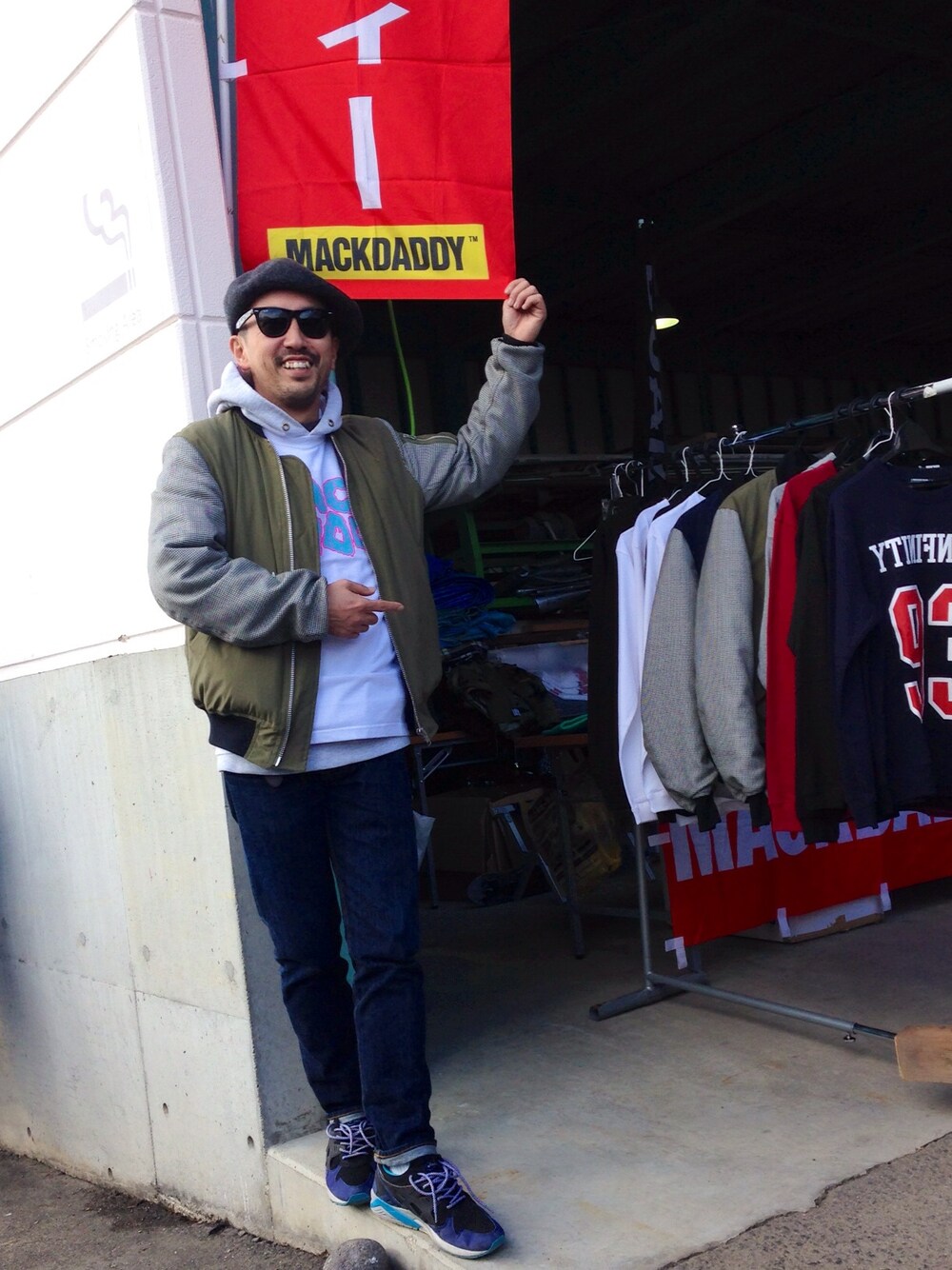 本日福島市にて、うづぐしまLIVEのイベントで、MACKDADDYとDOARATにて物販やっとります(^^) 外で寒いですが、みんなで大声出して盛り上がって行きます\(^o^)/ ジャケット:MACKDADDY Tシャツ:MACKDADDY デニムパンツ:MACKDADDY ベレー帽:HORDEN みんな待ってるでぇ(^^)