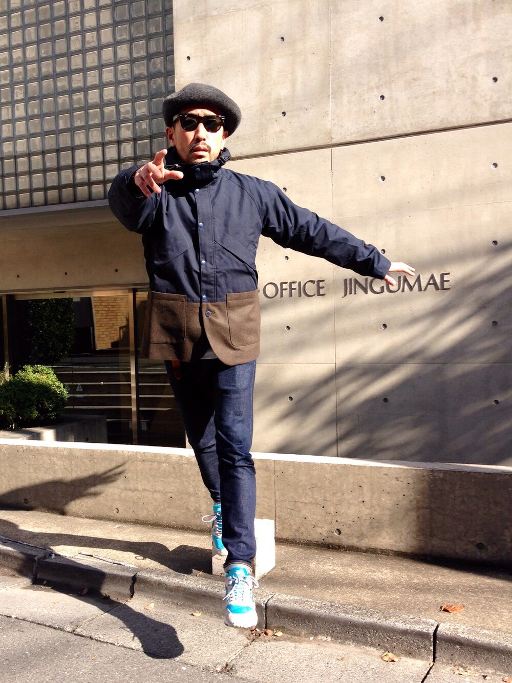 今日は飛んでます。 躍動感有るスタイル。 裾がジャケットの様になった、切返しのマウンテンパーカー。 インナーとして使っても、アウターとしてのコーディネートも可能なマウンパー。 裾の切り替えし部分は、メリノウールを使用し、 後ろ身頃にはセンターベンツも表現されてます(^^) マウンテンパーカー:MACKDADDY スキニーデニム:MACKDADDY クルーネックスウェット:MACKDADDY ベレー帽:HORDEN サングラス:RAY BAN スニーカー:asics