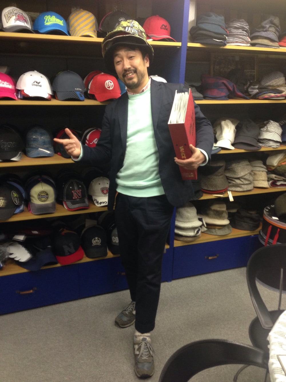 本日最後の打合せは、帽子屋さんです。 セットアップをストリートっぽく、デイリーにカジュアルにって感じです。
