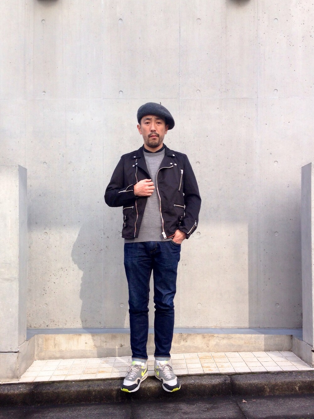 今日の東京、ものすごく暖かいです(^^) コットンのライダースが調子良い感じです! 革ジャンでは無いので、ゴールデンウイーク辺り迄、このジャケットを着たおしますよ〜 コットンライダースジャケット:MACKDADDY スキニーデニム:MACKDADDY ベレー帽:HORDEN スニーカー:NIKE
