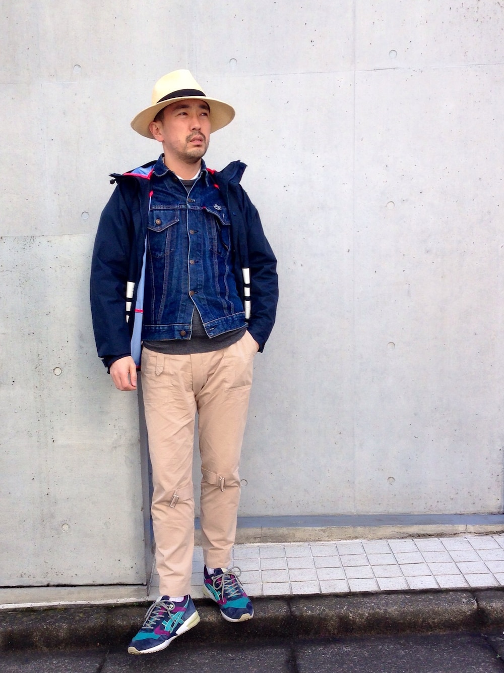 東京、暖かくて気持ちが良いです。 今日はお気に入り、 古着のデニムジャケットです。 マウンテンパーカーは前のマックダディーで、 スリーレイヤードのナイロンを使用してます。 今週入荷の本パナマを使用したハットが、 最高に素材と形が良いです! やはり本物は違いますね😍 メンズではあまり見ないツバ広なデザインや、 ハットの深めな被り具合など、 是非見て頂きたいアイテムです(^^) マウンテンパーカー:MACKDADDY デニムジャケット:古着リーバイス 70505 ニット:マルタン マルジェラ ボンテージパンツ:PHINGERIN ベレー帽:HARDEN スニーカー:asics