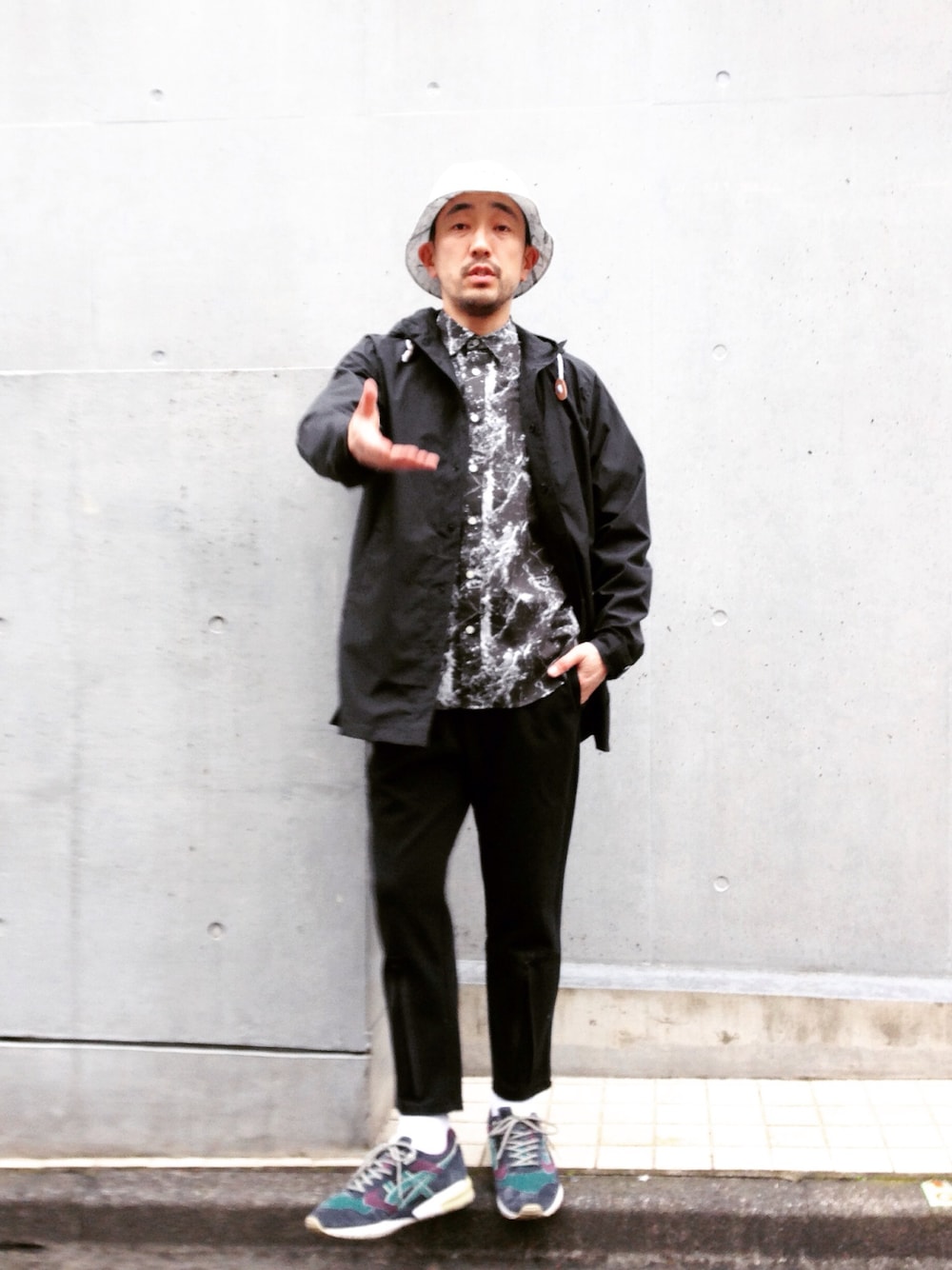 黒いです、今日は。 大人っぽく着こなせてますか? オリジナルテキスタイル[クラック]を使用したシャツなのですが、モノトーンながらもインパクトの有る柄がお気に入りです(^^) マウンテンパーカー:MACKDADDY クラック柄 シャツ:MACKDADDY スウェットイージーパンツ:MACKDADDY バケットハット:MACKDADDY スニーカー:asics